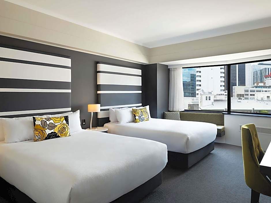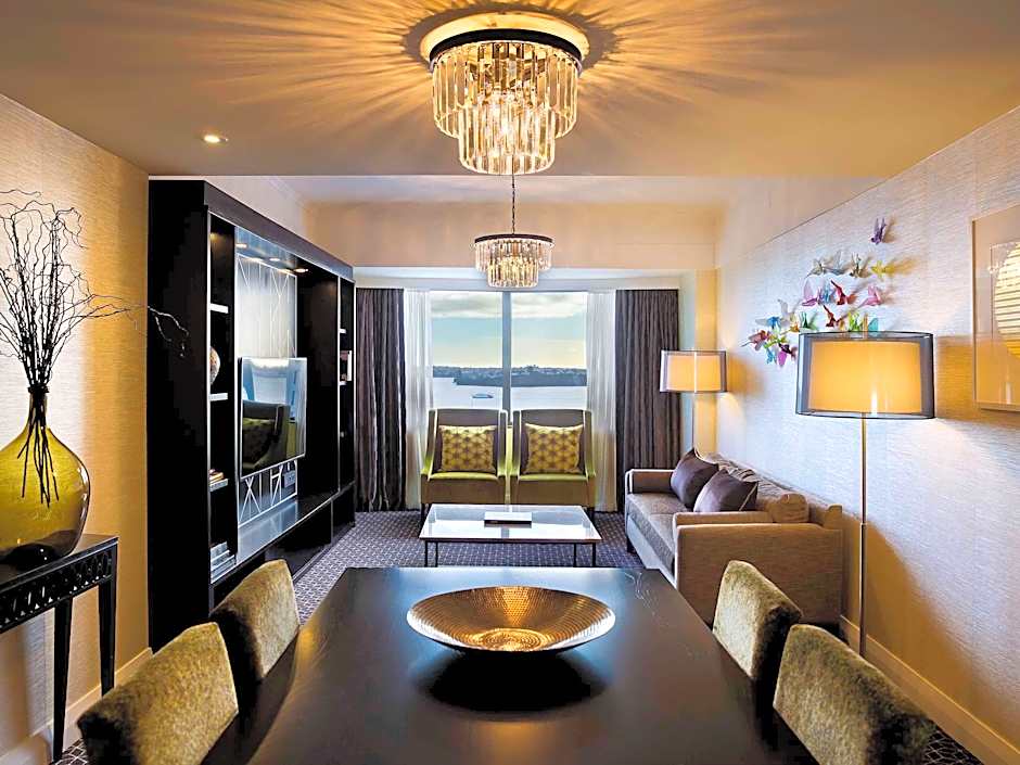 Located on the higher floors to allow for expansive views of Auckland’s Waitemata Harbor or city skyline, this spacious, elegantly appointed room has 2 queen-sized beds and an private bathroom with a rain shower and manuka honey based toiletries. There is a mini-bar, tea/coffee making facilities and a 42-inch Smart TV with 57 channels and Blu-tooth connectivity. Bathrobes and slippers are included.